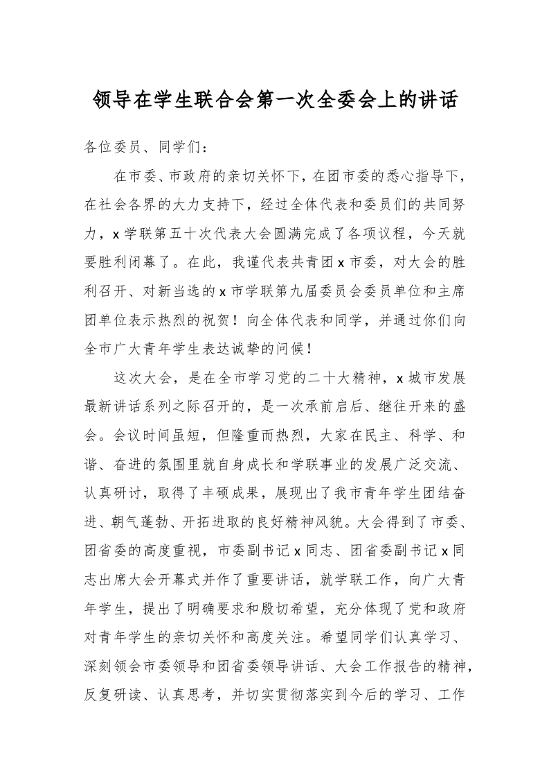 / 领导在学生联合会第一次全委会上的讲话