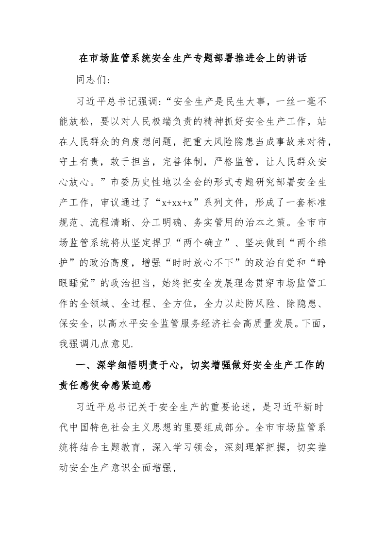 / 在市场监管系统安全生产专题部署推进会上的讲话