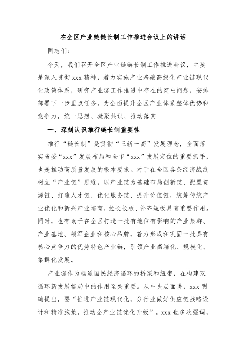 / 在全区产业链链长制工作推进会议上的讲话