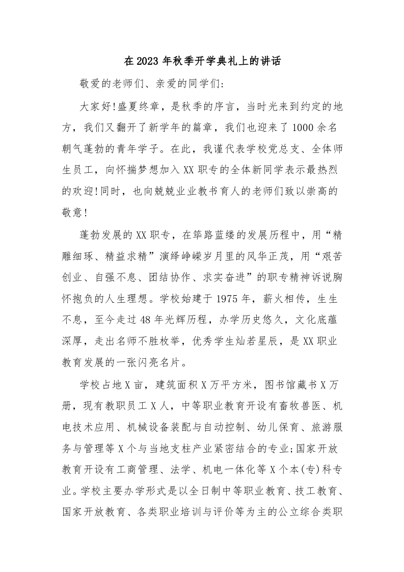 在2023年秋季开学典礼上的讲话材料汇编(6篇)