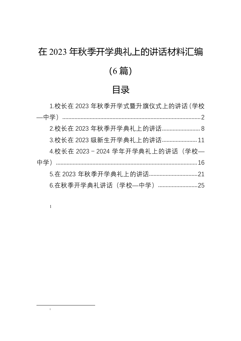 / 在2023年秋季开学典礼上的讲话材料汇编(6篇)