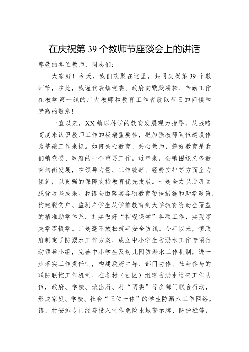 / 在庆祝第39个教师节座谈会上的讲话