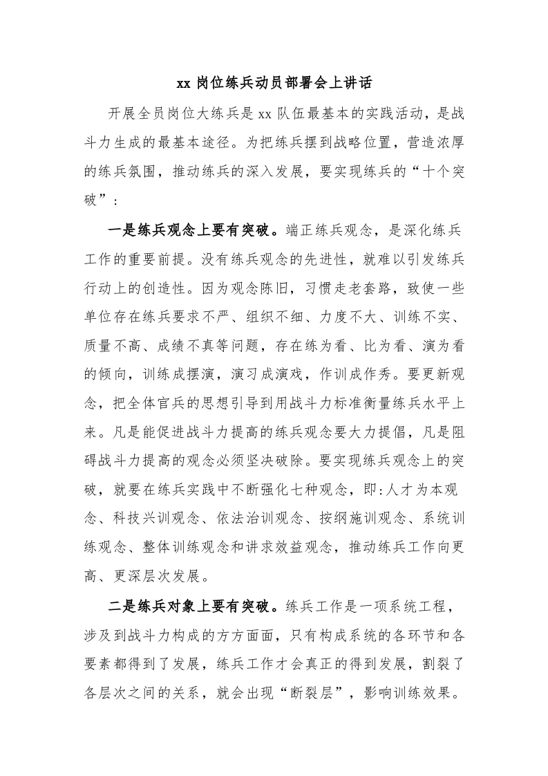 / xx岗位练兵动员部署会上讲话