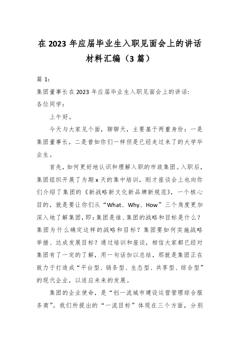 / (3篇)在2023年应届毕业生入职见面会上的讲话材料汇编