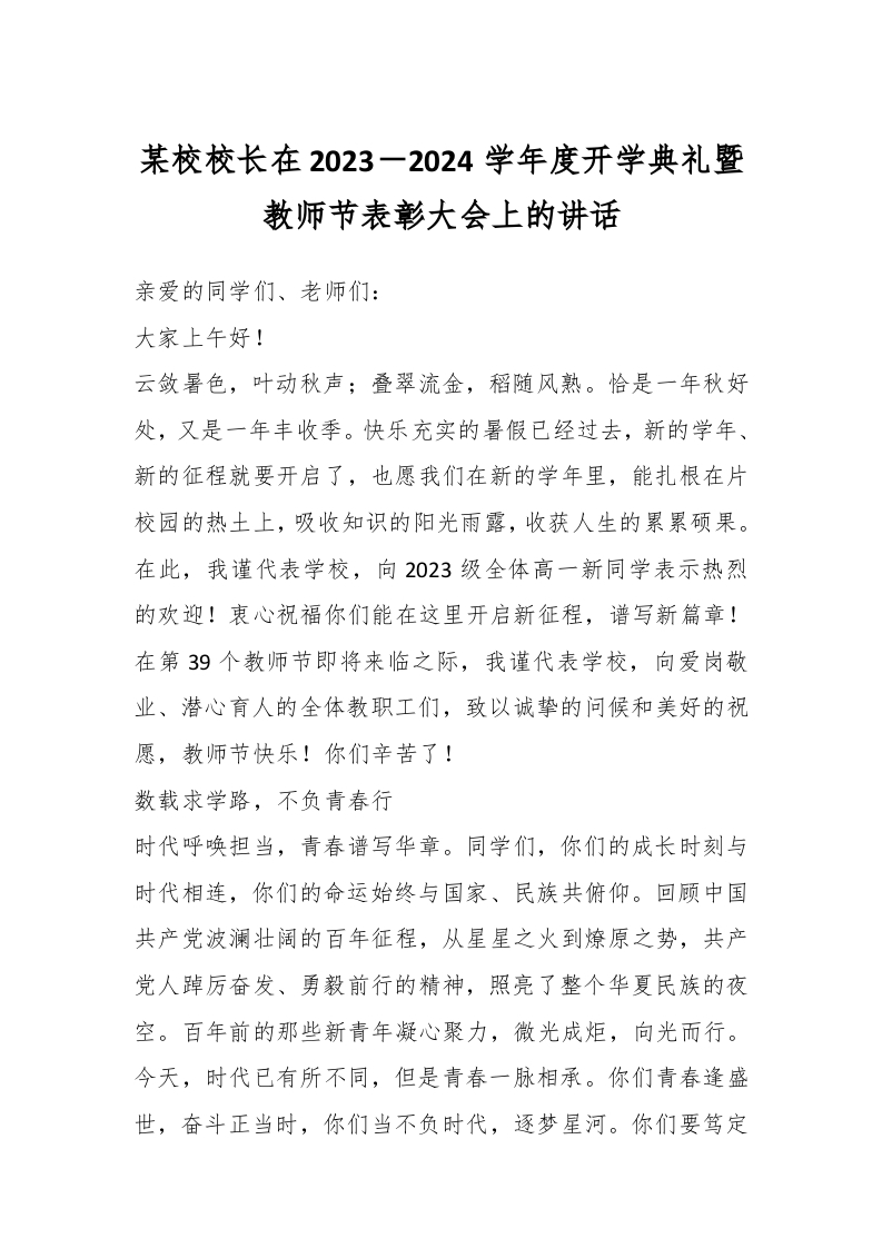 / 某校校长在2023-2024学年度开学典礼暨教师节表彰大会上的讲话