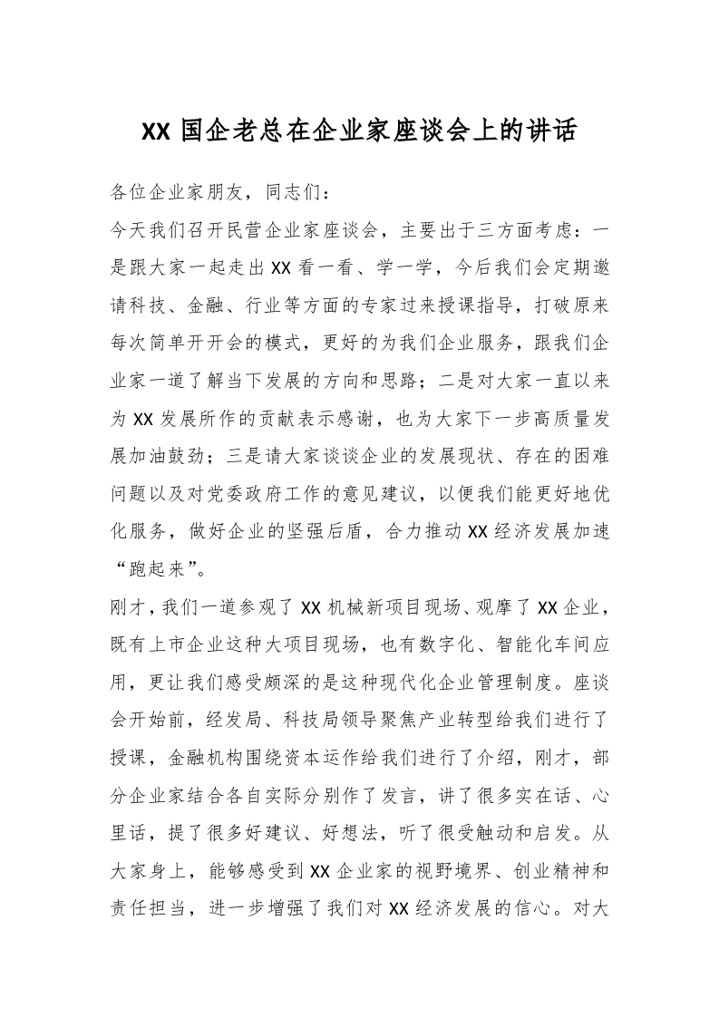/ XX国企老总在企业家座谈会上的讲话