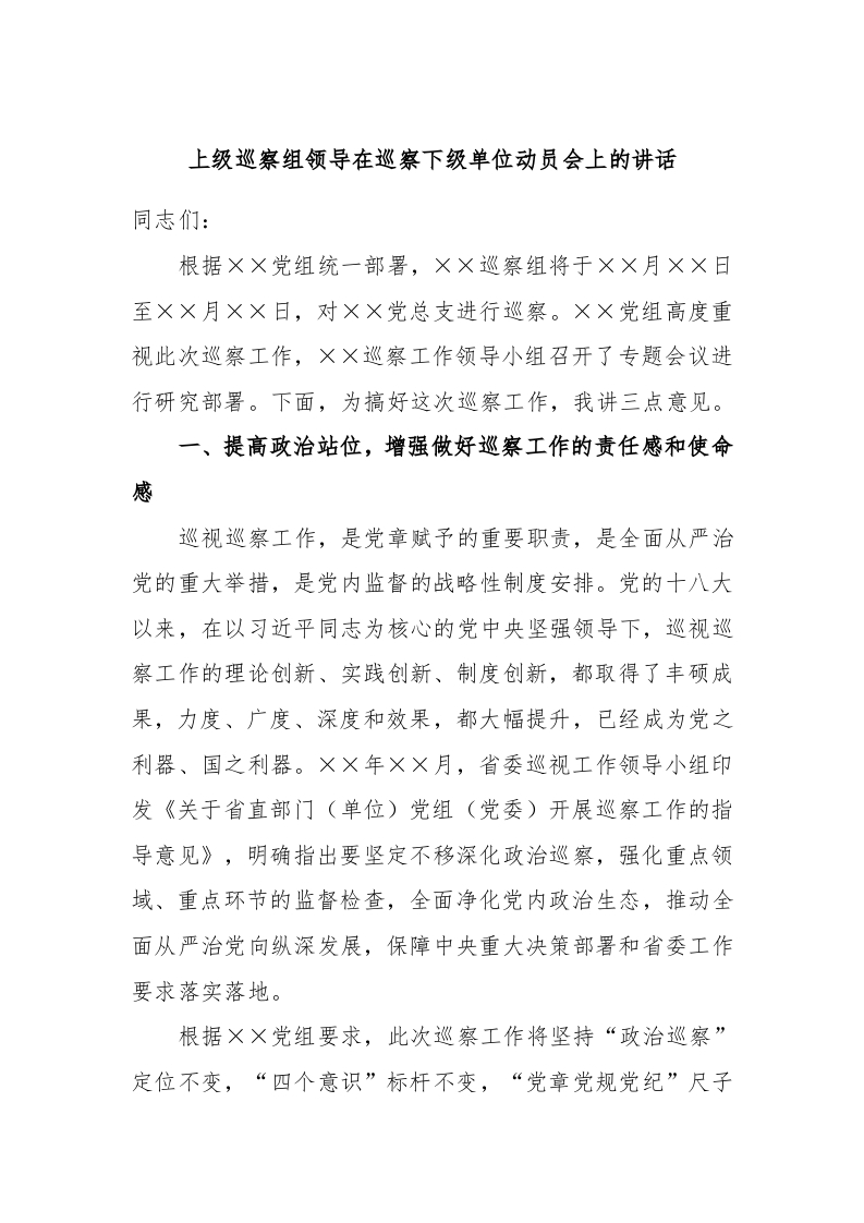 / 上级巡察组领导在巡察下级单位动员会上的讲话