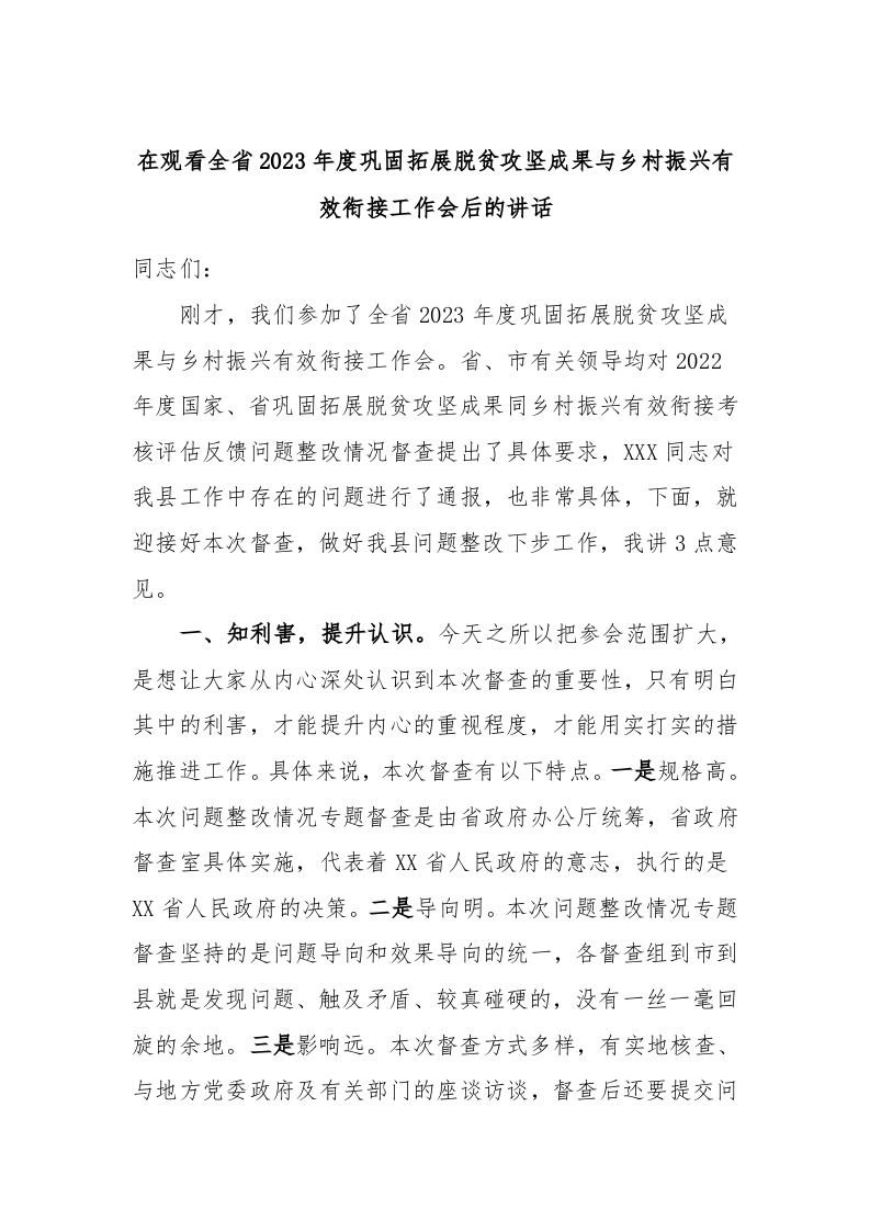 / 在观看全省2023年度巩固拓展脱贫攻坚成果与乡村振兴有效衔接工作会后的讲话