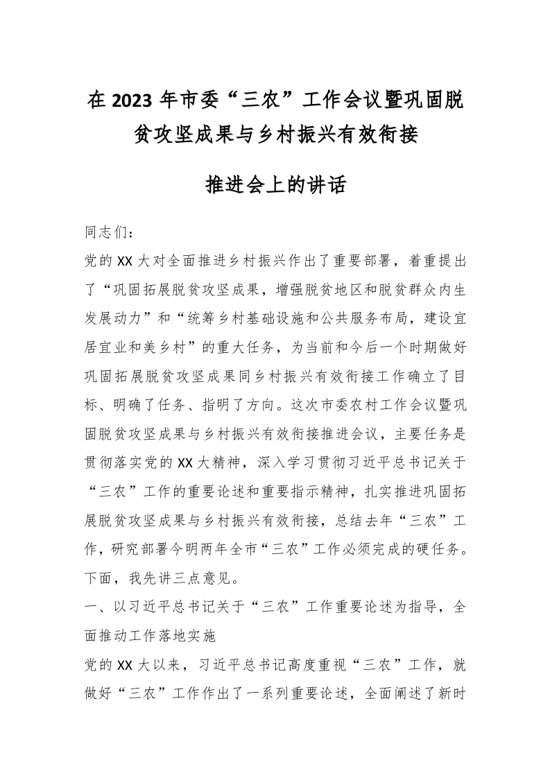 在2023年市委“三农”工作会议暨巩固脱贫攻坚成果与乡村振兴有效衔接推进会上的讲话