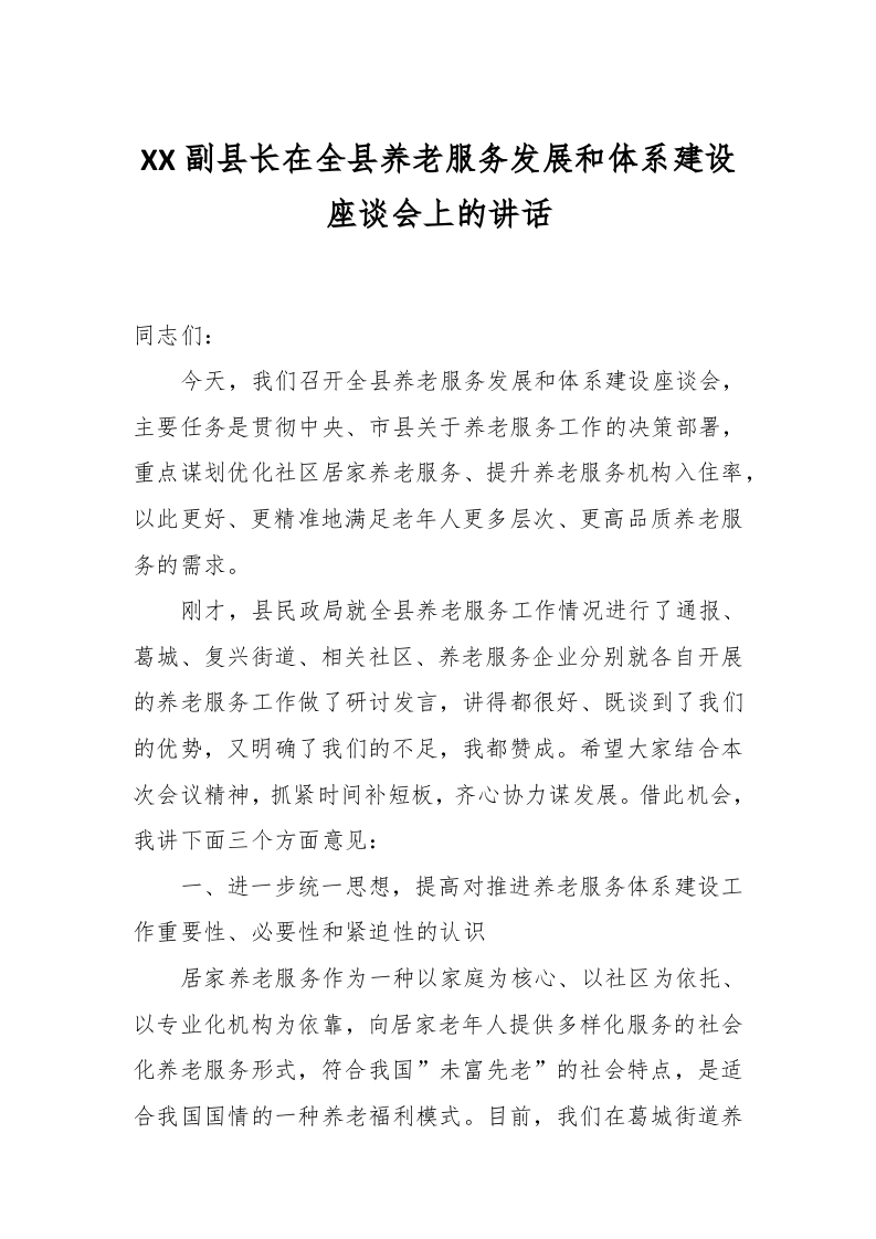 / XX副县长在全县养老服务发展和体系建设座谈会上的讲话