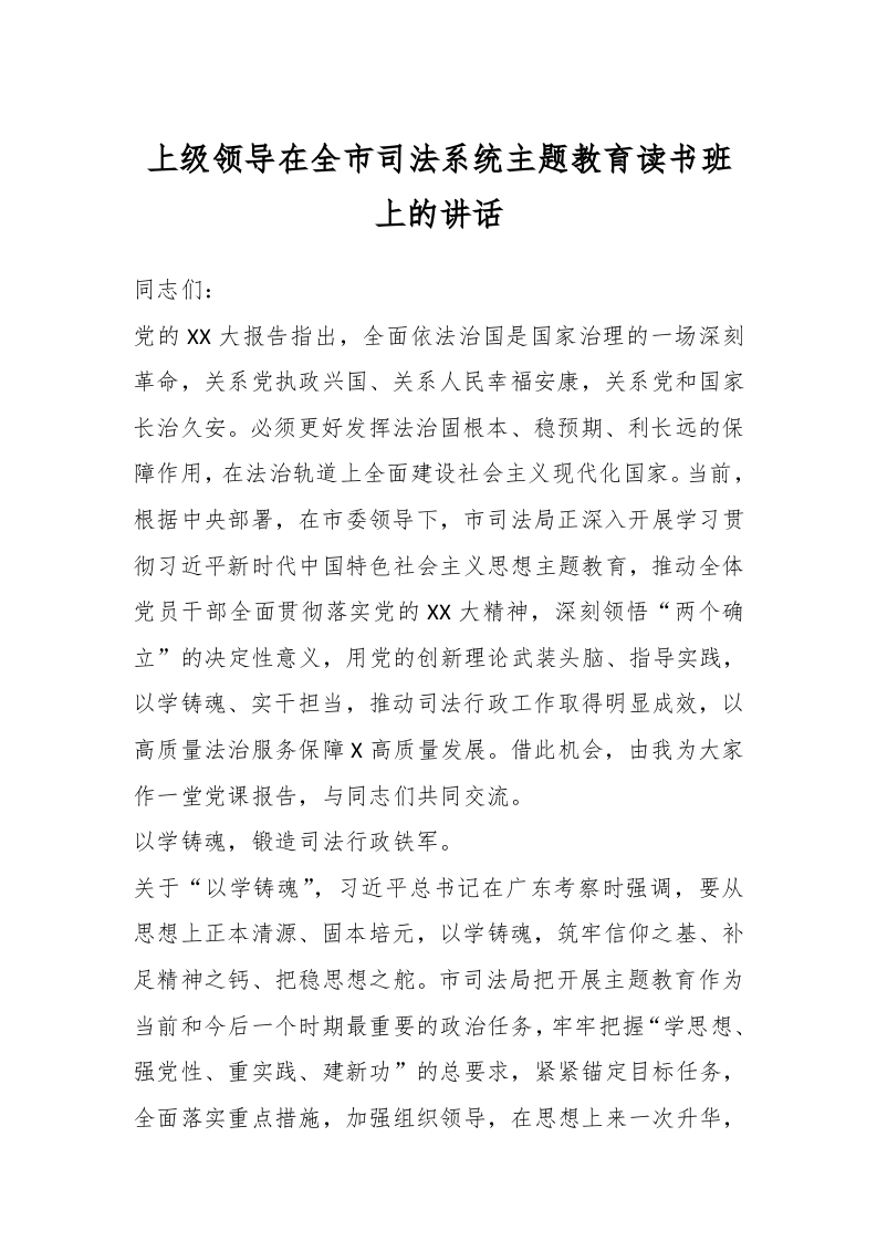 / 上级领导在全市司法系统主题教育读书班上的讲话
