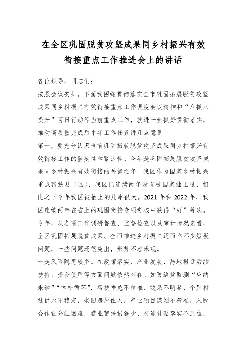 / 在全区巩固脱贫攻坚成果同乡村振兴有效衔接重点工作推进会上的讲话