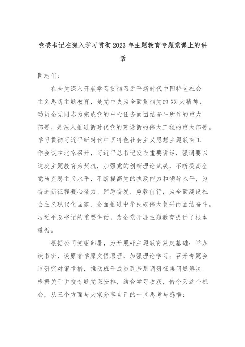 / 党委书记在深入学习贯彻2023年主题教育专题党课上的讲话