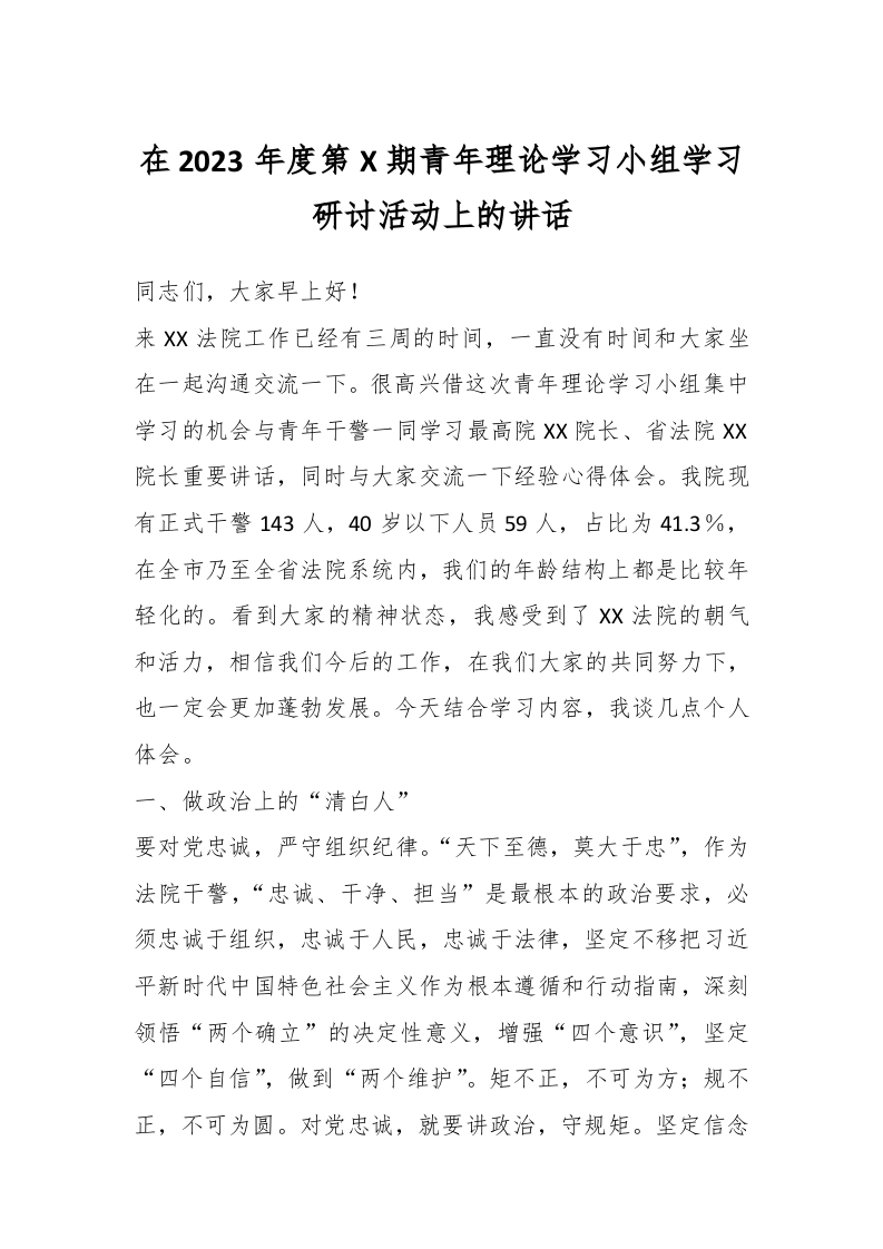 / 在2023年度第X期青年理论学习小组学习研讨活动上的讲话
