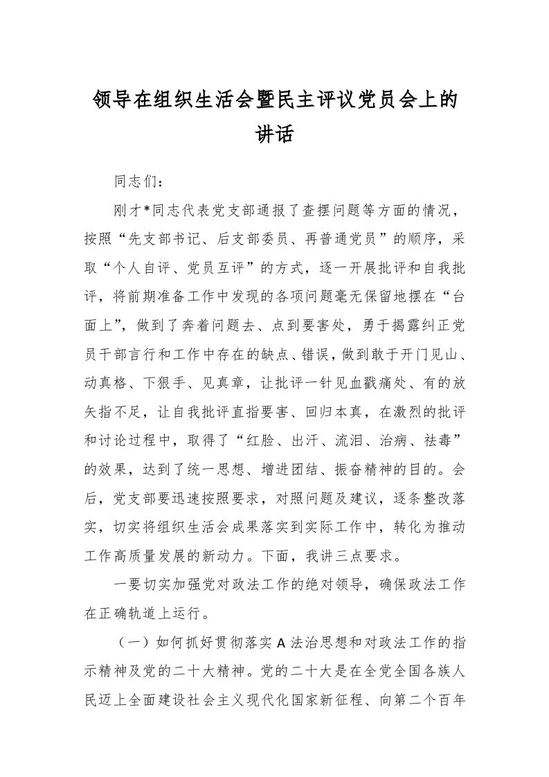 / 领导在组织生活会暨民主评议党员会上的讲话
