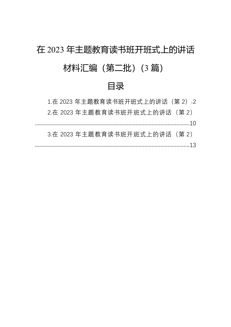 / 在2023年主题教育读书班开班式上的讲话材料汇编(第二批)(3篇)