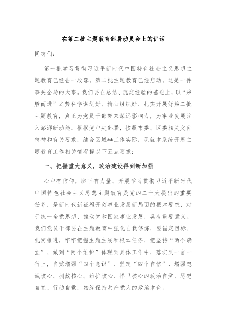 在全市第二批主题教育动员部署工作会议上的主持词和讲话