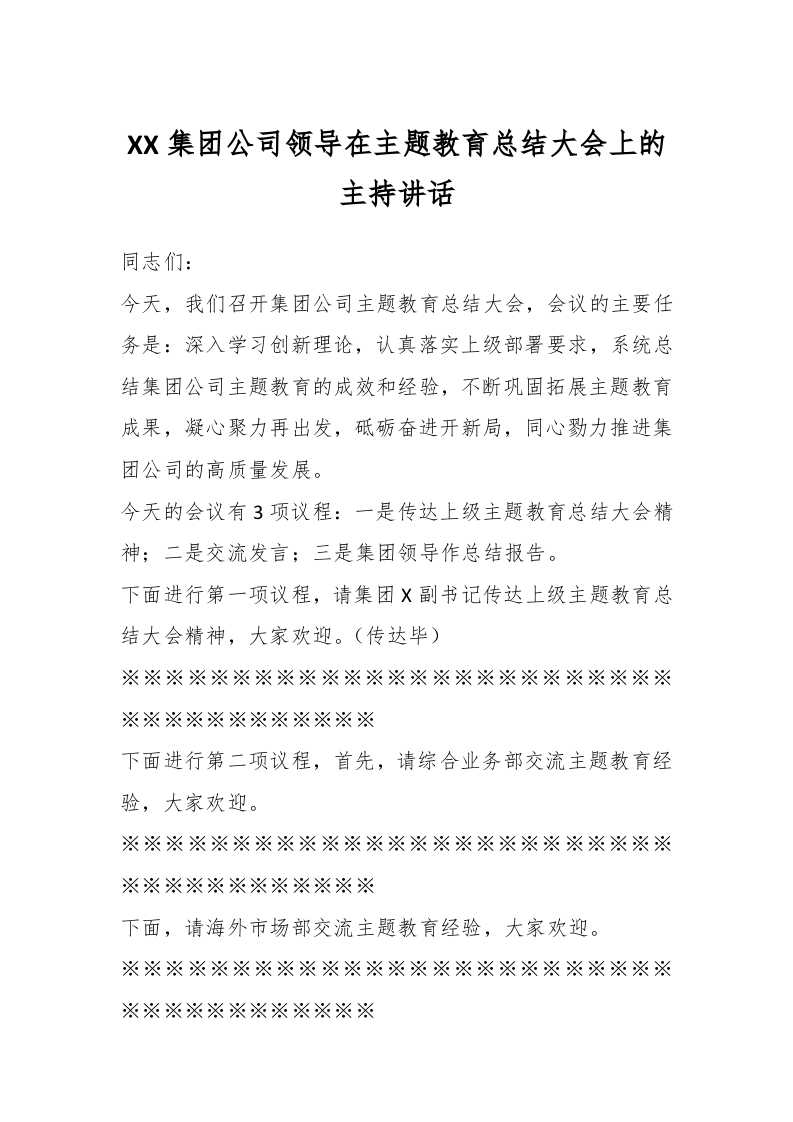 / XX集团公司领导在主题教育总结大会上的主持讲话