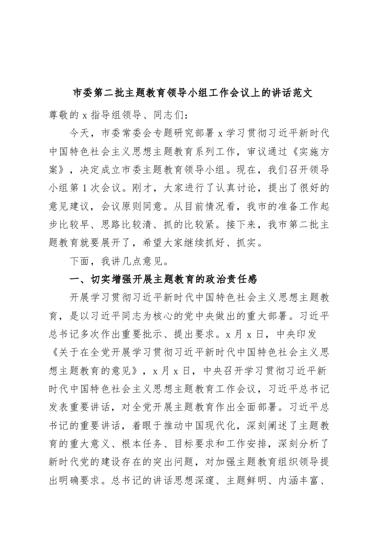 / 市第二批主题教育领导小组工作会议讲话