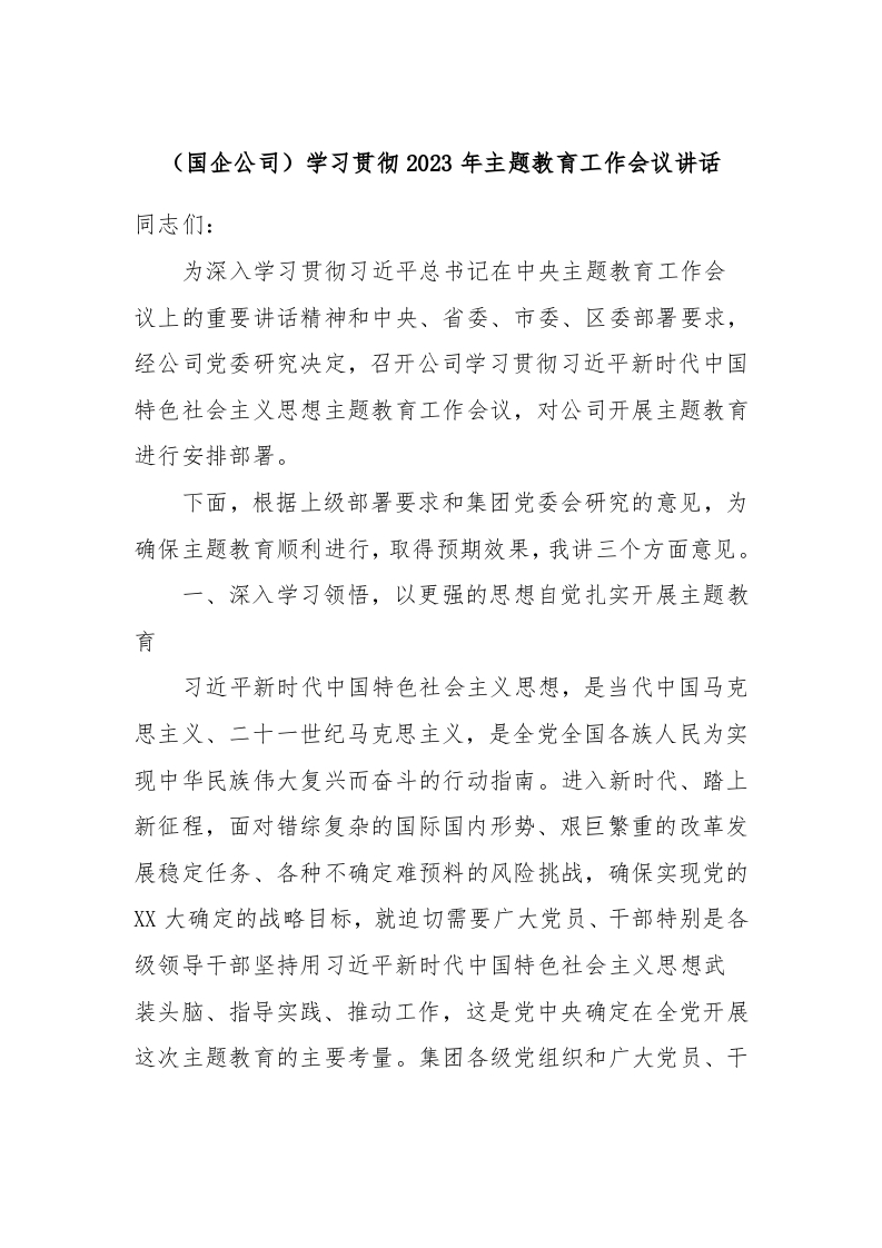 / (国企公司)学习贯彻2023年主题教育工作会议讲话
