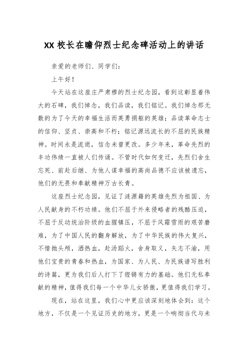 / XX校长在瞻仰烈士纪念碑活动上的讲话