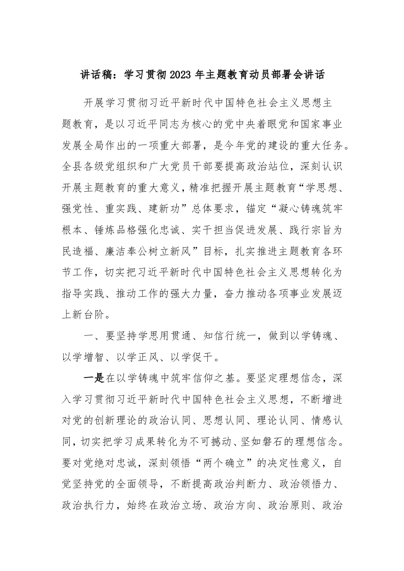 讲话稿:学习贯彻2023年主题教育动员部署会讲话