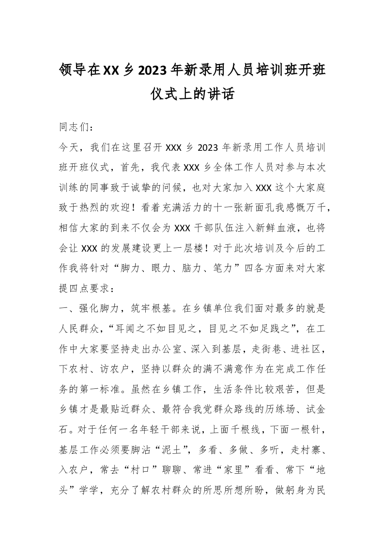/ 领导在XX乡2023年新录用人员培训班开班仪式上的讲话