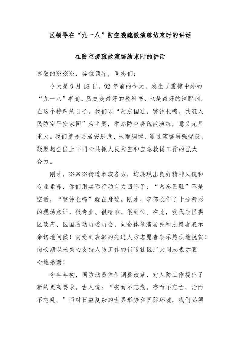 / 区领导在“九一八”防空袭疏散演练结束时的讲话