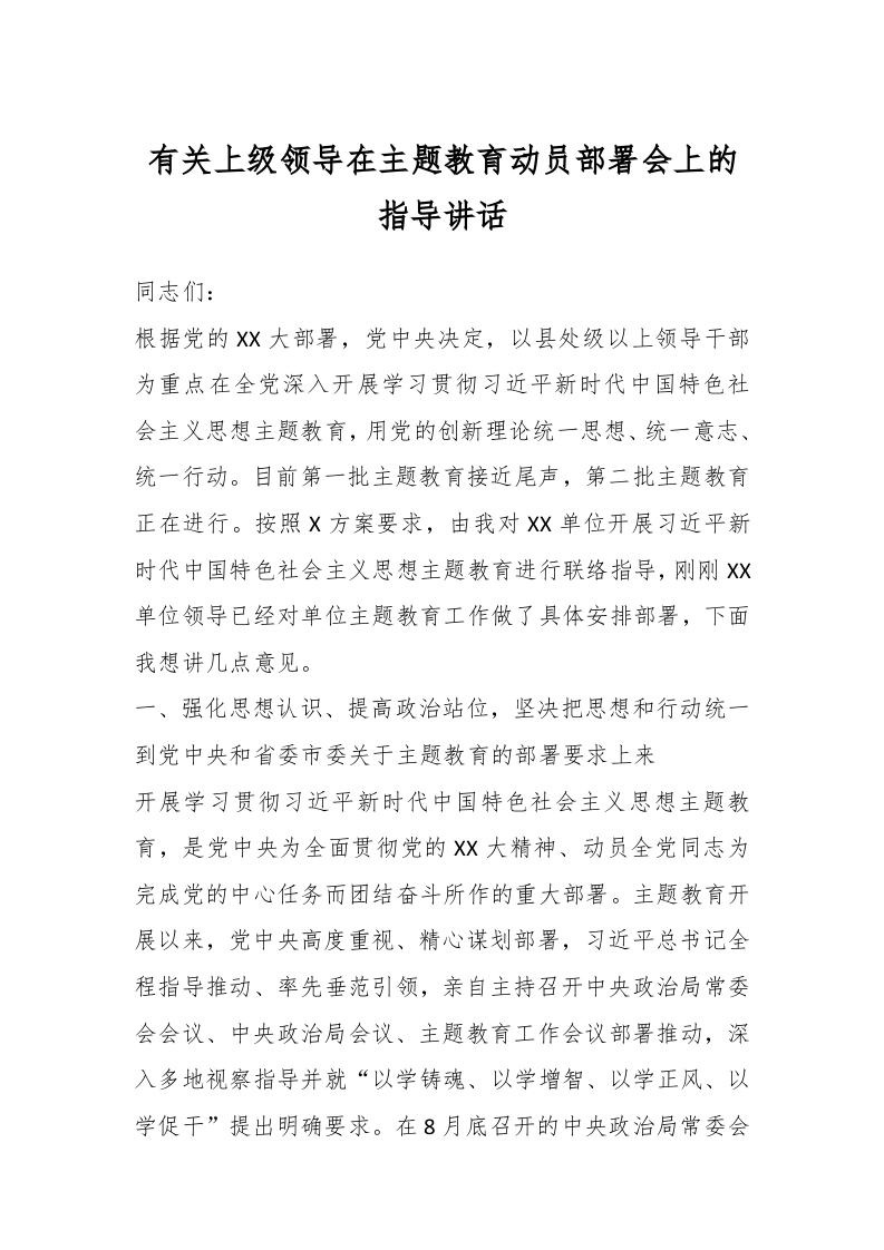/ 有关上级领导在主题教育动员部署会上的指导讲话