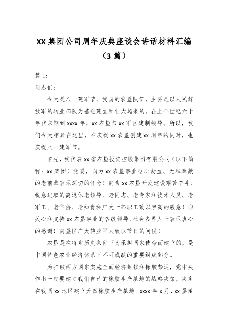 / (3篇)XX集团公司周年庆典座谈会讲话材料汇编