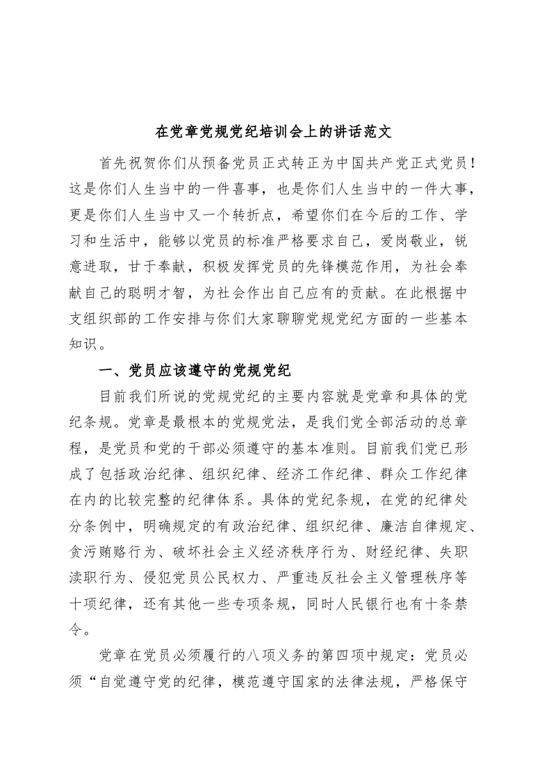 党章党规党纪培训会讲话班
