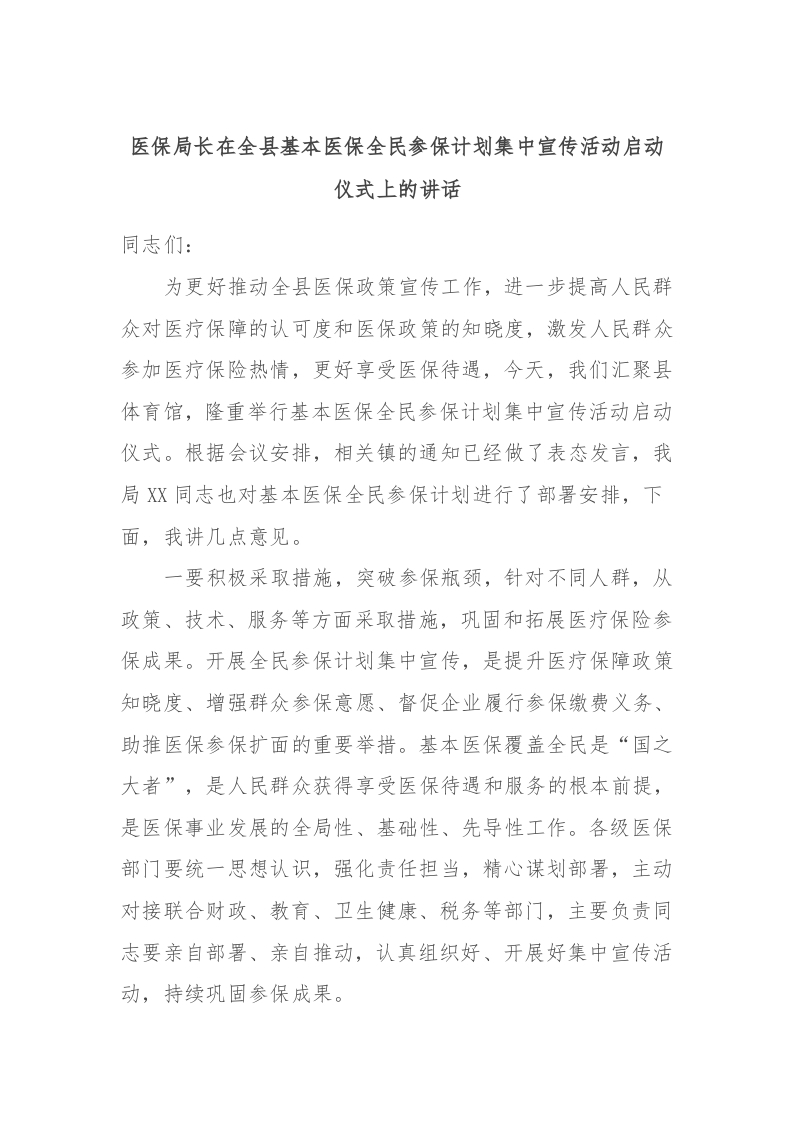 / 医保局长在全县基本医保全民参保计划集中宣传活动启动仪式上的讲话