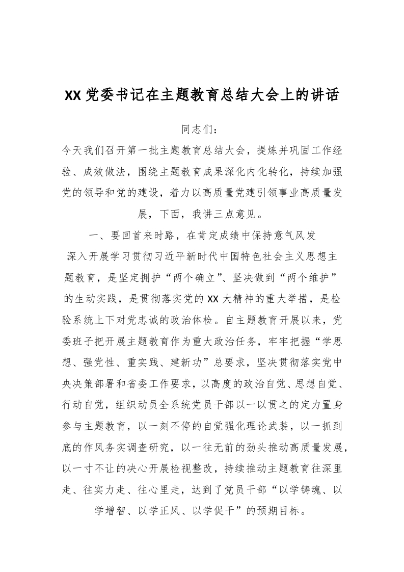 XXX县委书记在全县学习贯彻2023年主题教育工作会议上的讲话