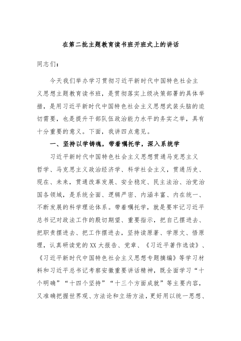 / 在第二批主题教育读书班开班式上的讲话