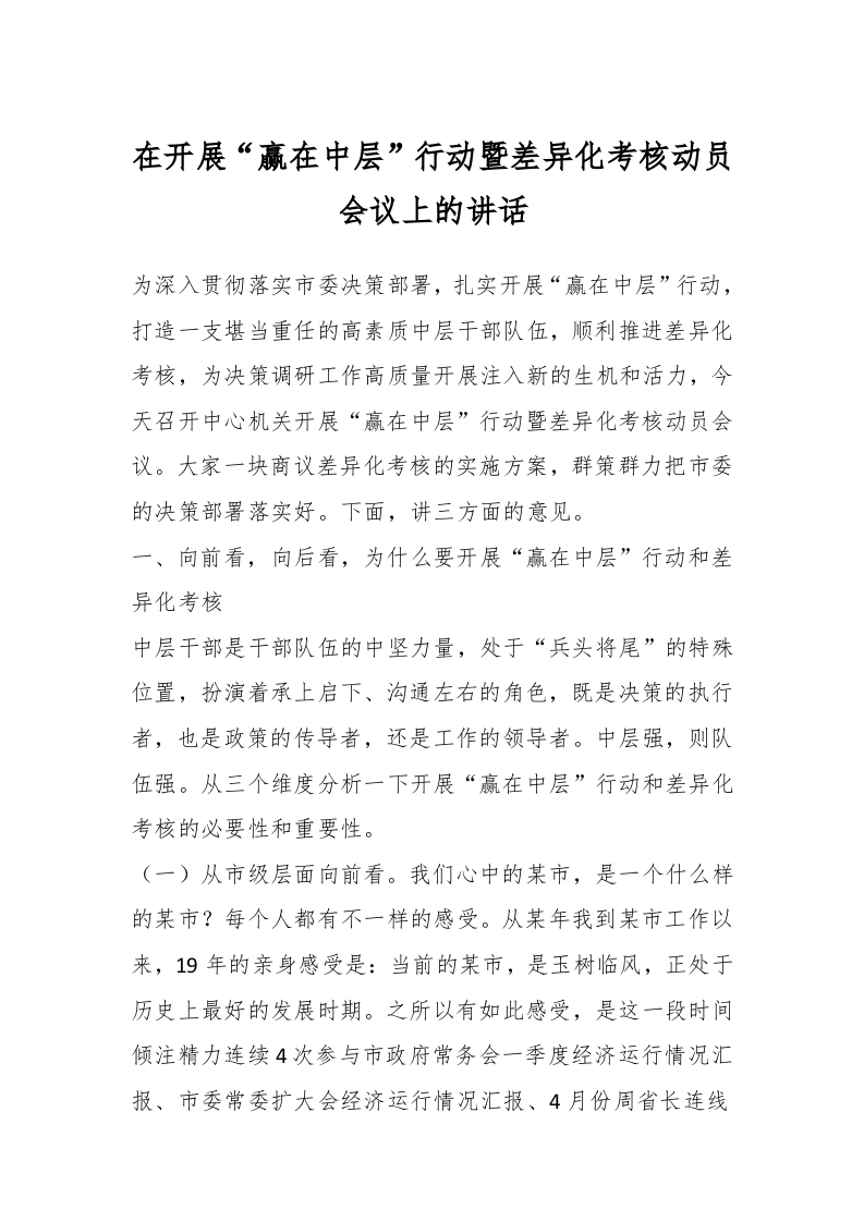 / 在开展“赢在中层”行动暨差异化考核动员会议上的讲话