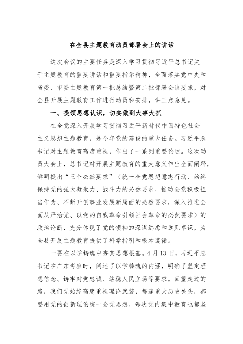 在全县学习贯彻2023年主题教育动员部署会议上的讲话