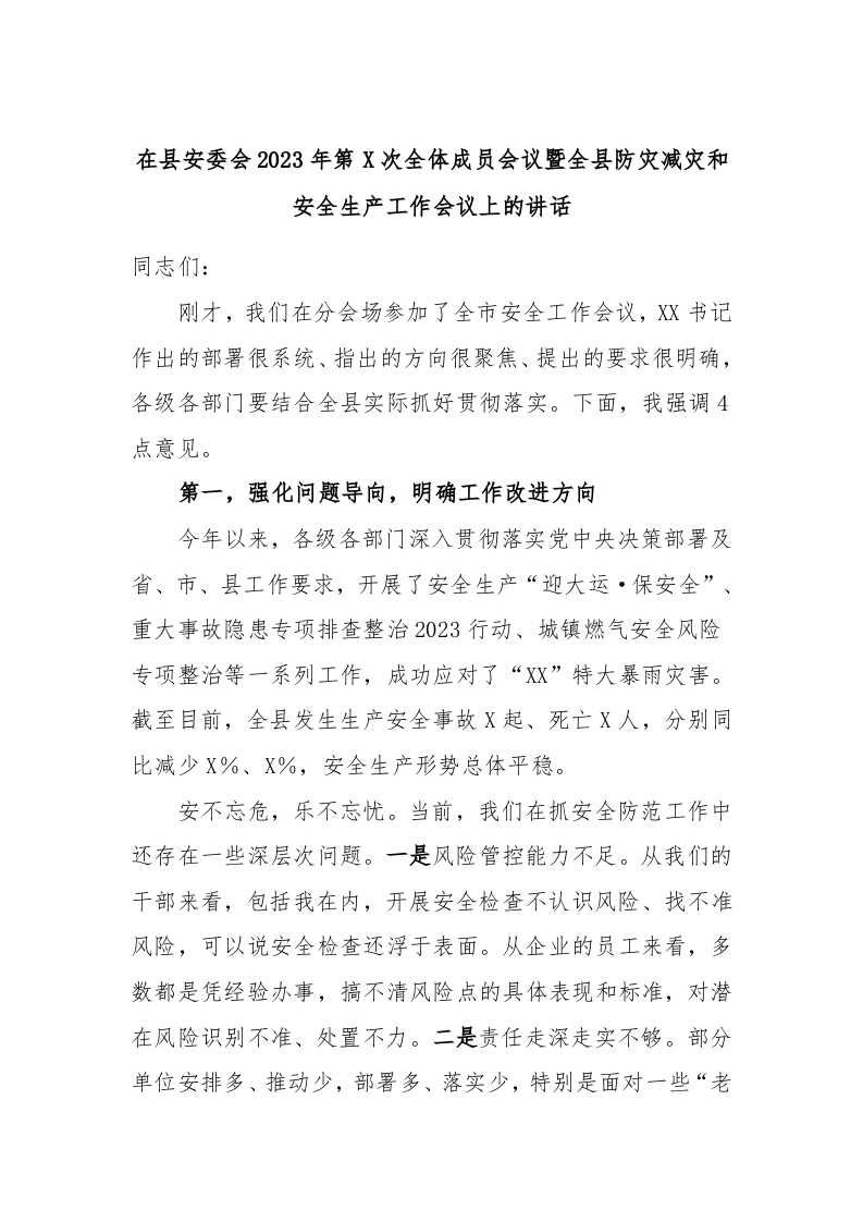 / 在县安委会2023年第X次全体成员会议暨全县防灾减灾和安全生产工作会议上的讲话