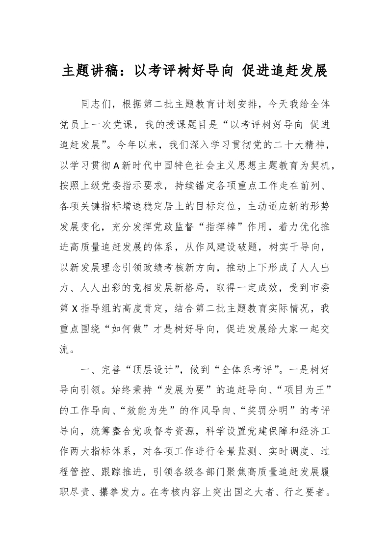 / 主题讲稿:以考评树好导向 促进追赶发展