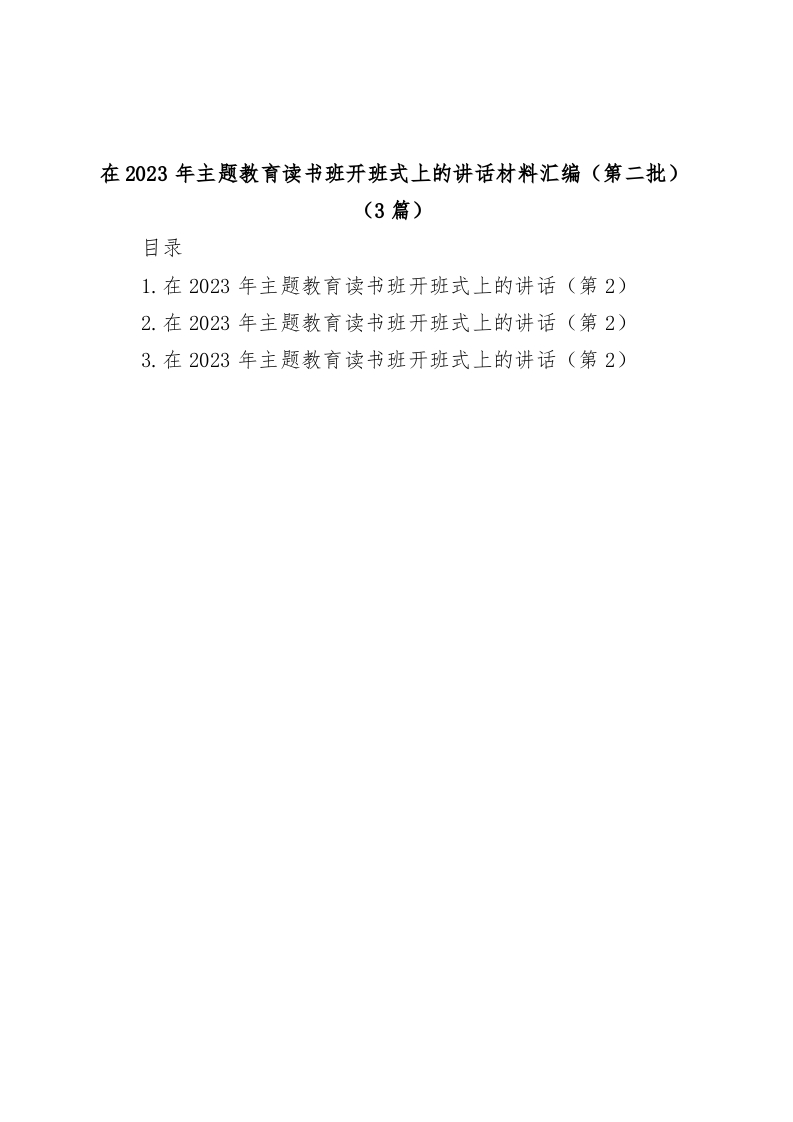 / (3篇)在2023年第二批主题教育读书班开班式上的讲话材料汇编