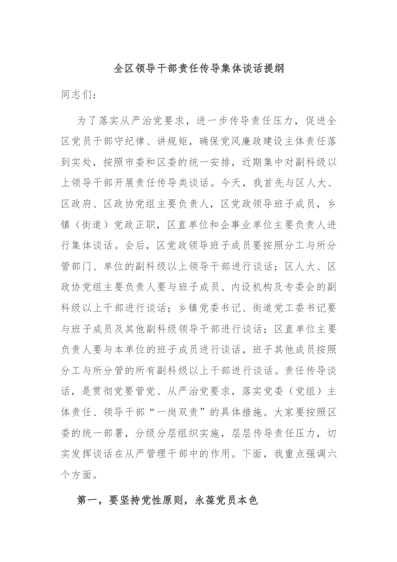 / 全区领导干部责任传导集体谈话提纲