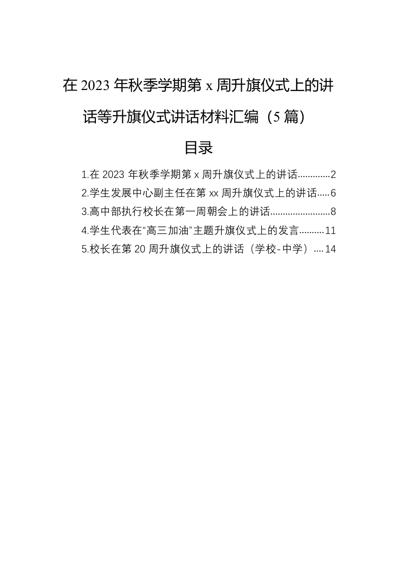 / 在2023年秋季学期第x周升旗仪式上的讲话等升旗仪式讲话材料汇编(5篇)