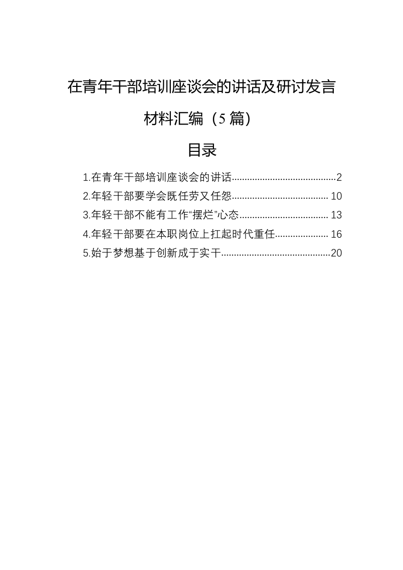 / 在青年干部培训座谈会的讲话及研讨发言材料汇编(5篇)