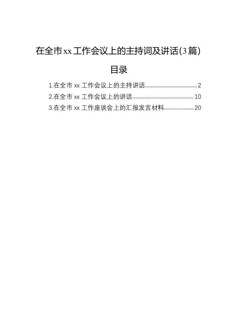 / 在全市xx工作会议上的主持词及讲话(3篇)