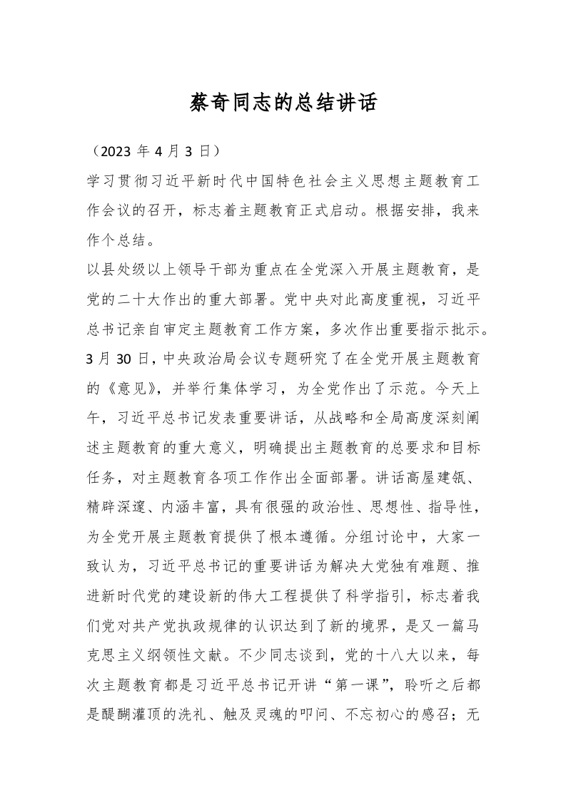 / 蔡奇同志的总结讲话