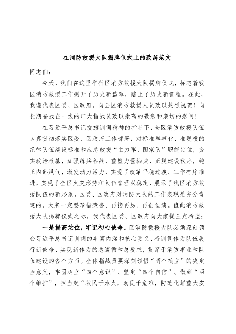 / 消防救援大队揭牌仪式致辞挂牌讲话
