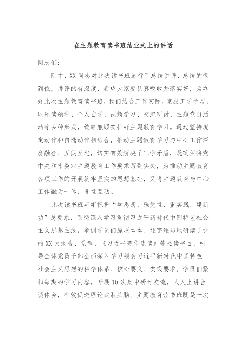 / 在主题教育读书班结业式上的讲话 (2)