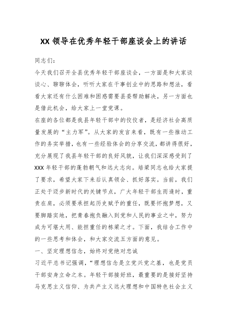 / XX领导在优秀年轻干部座谈会上的讲话