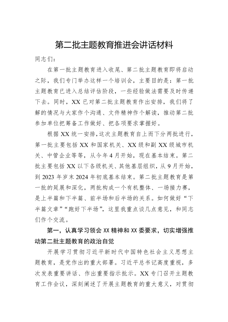 / 第二批主题教育推进会讲话材料