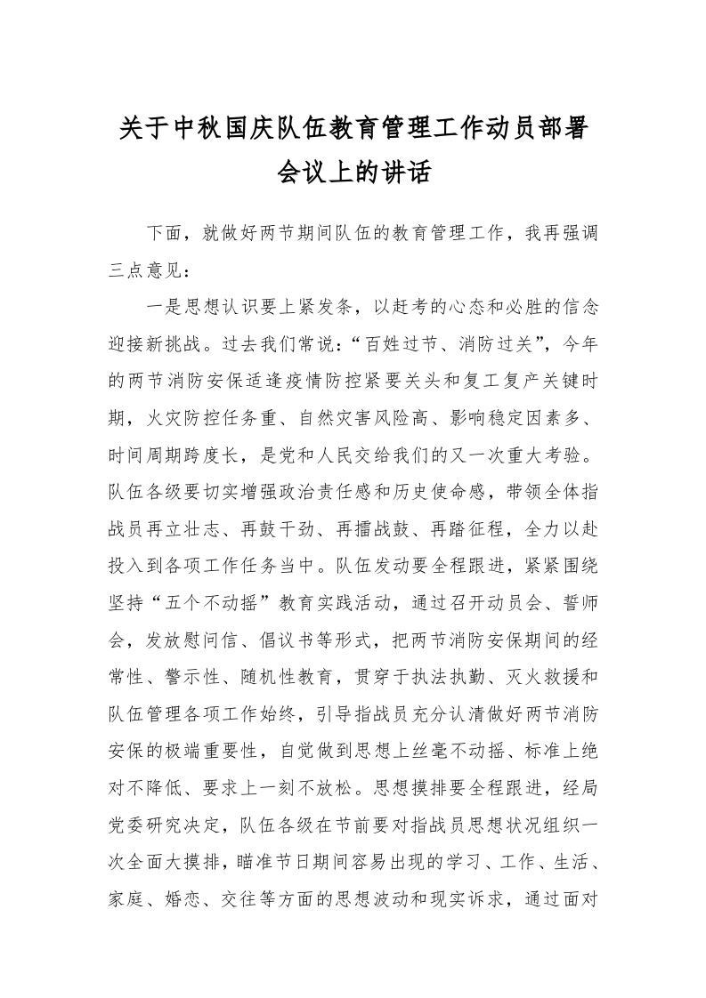 / 关于中秋国庆队伍教育管理工作动员部署会议上的讲话