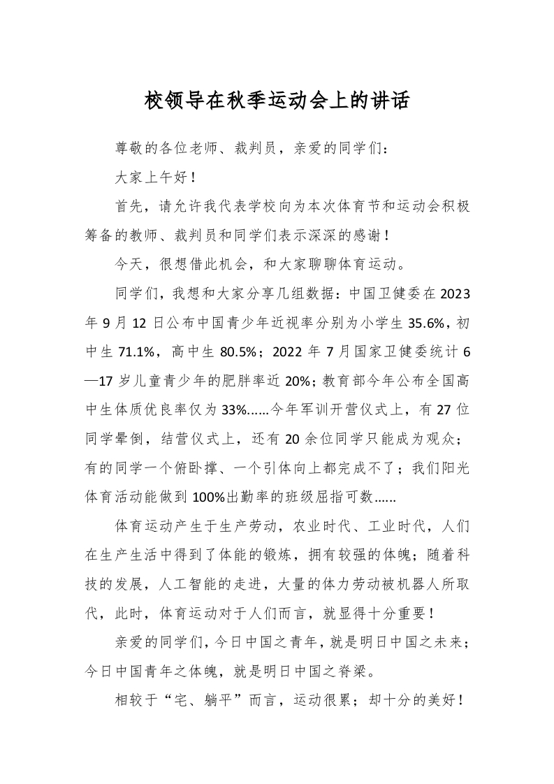 / 校领导在秋季运动会上的讲话